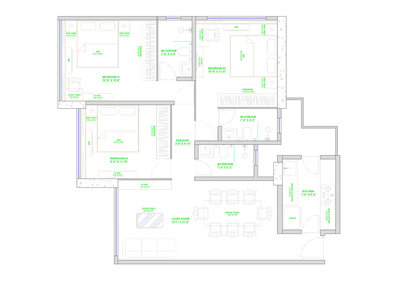 Furniture, Plumbing & Electrical Layouts